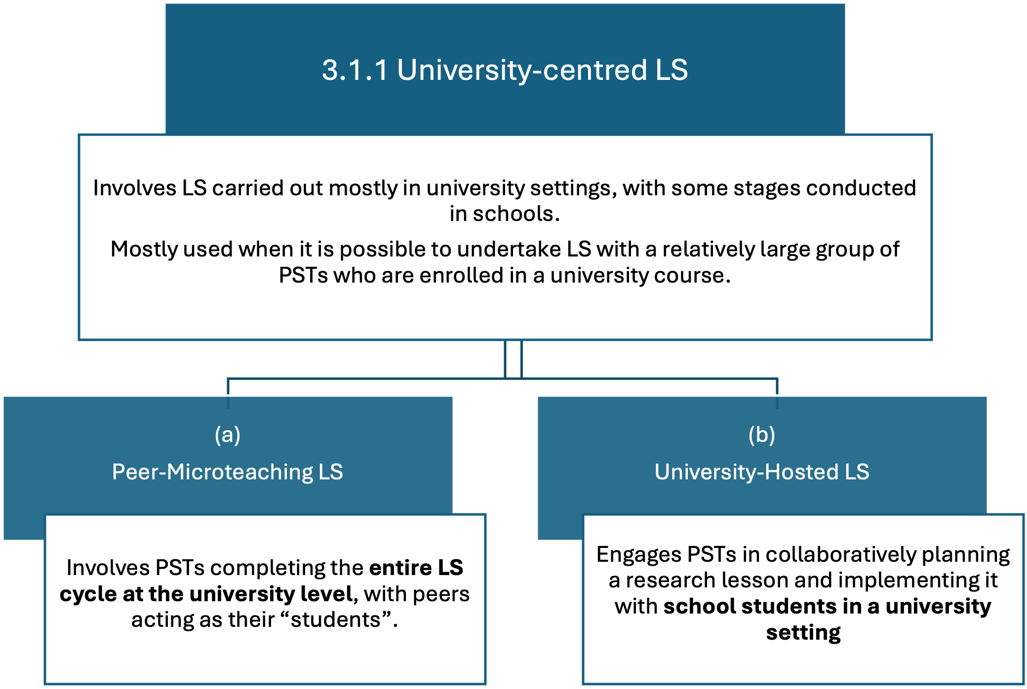 Besides the general goal of developing didactical and educational knowledge, LS in ITE may also support more specific aims. These include exploring curricular approaches such as inquiry-based learning, preparing and leading whole-class discussions, using technology in the classroom, conducting inclusive education, and developing a relational practice perspective. The consideration of these more specific goals may justify increasing the number of sessions a bit.