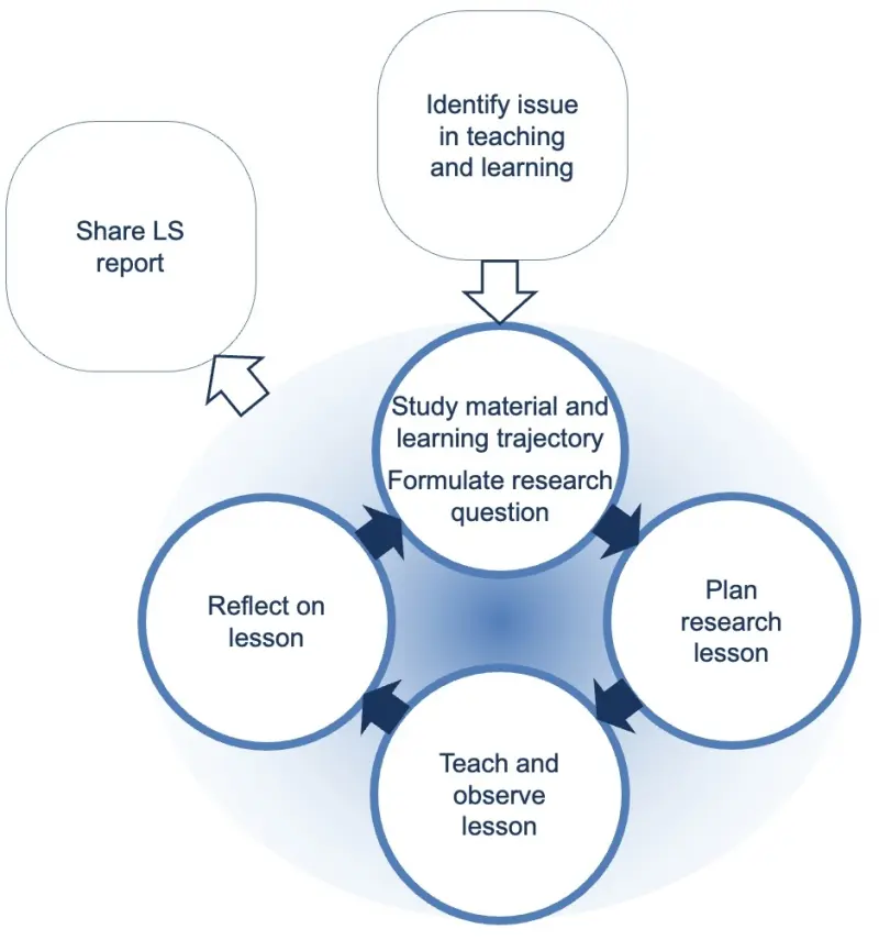 In parallel, one may also prepare data collection instruments to support observation and analysis during the research lesson. The reflection of the lesson is done in a structured way based on actual observations and data regarding students’ learning collected by the teacher and the other participants.